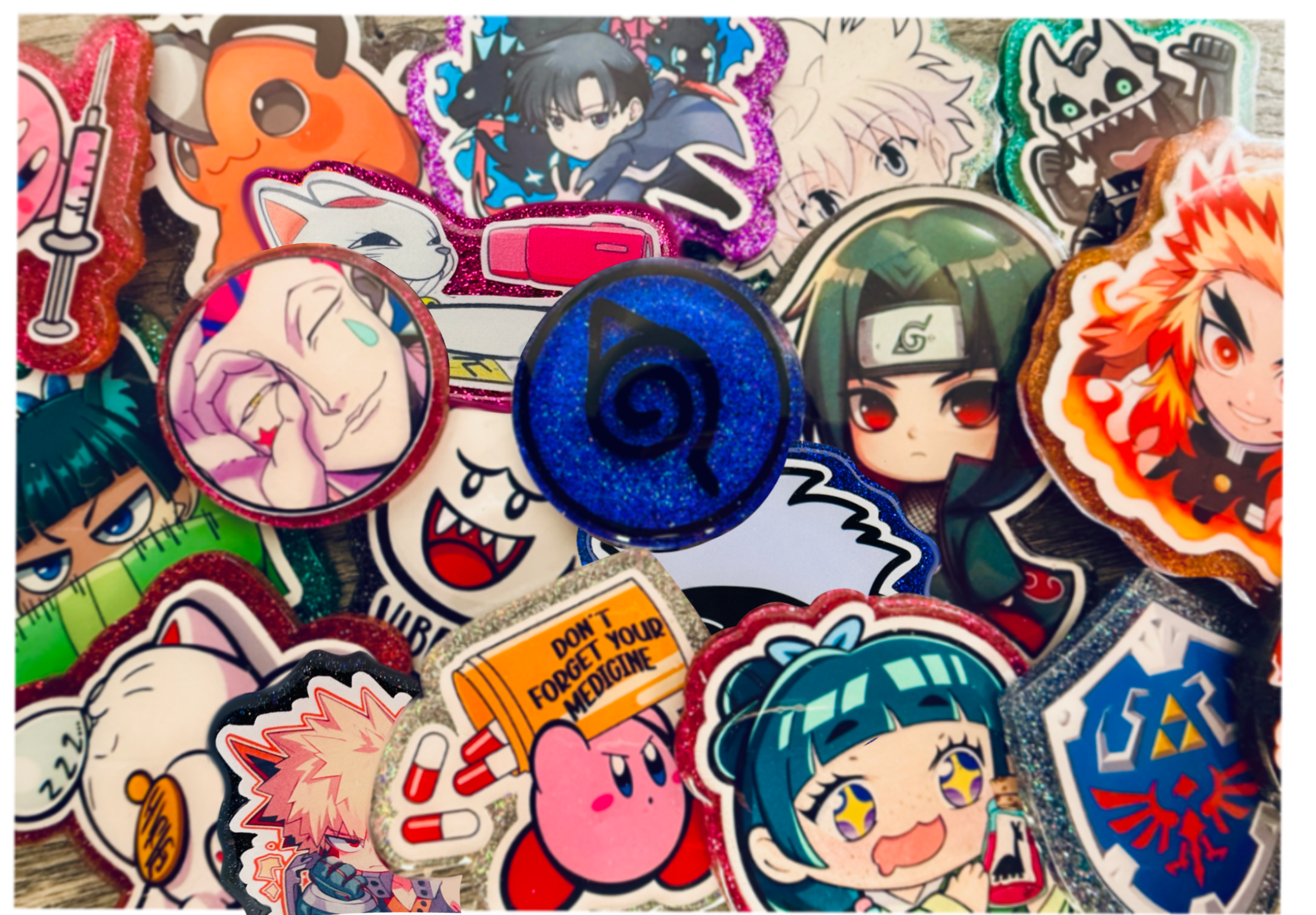 Anime Girl Inspired Badge Reel/ID Clip Retractable-(Alligator, Belt, MRI Safe, Carabiner Clips) & Non-Retractable Clips
