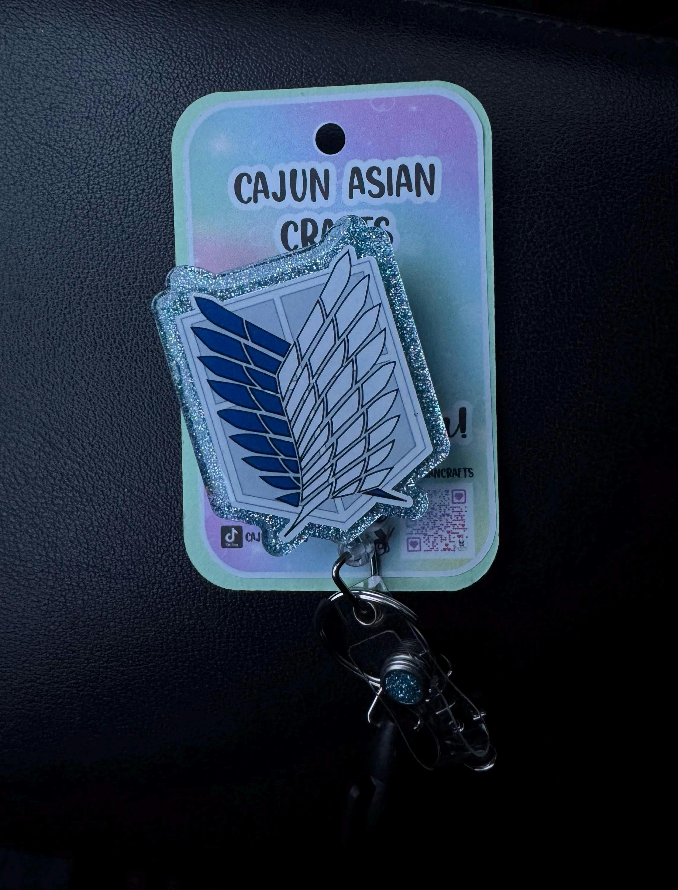 Anime Titan Wings Inspired Badge Reel/ID Clip Retractable-(Alligator, Belt, MRI Safe, Carabiner Clips) & Non-Retractable Clips
