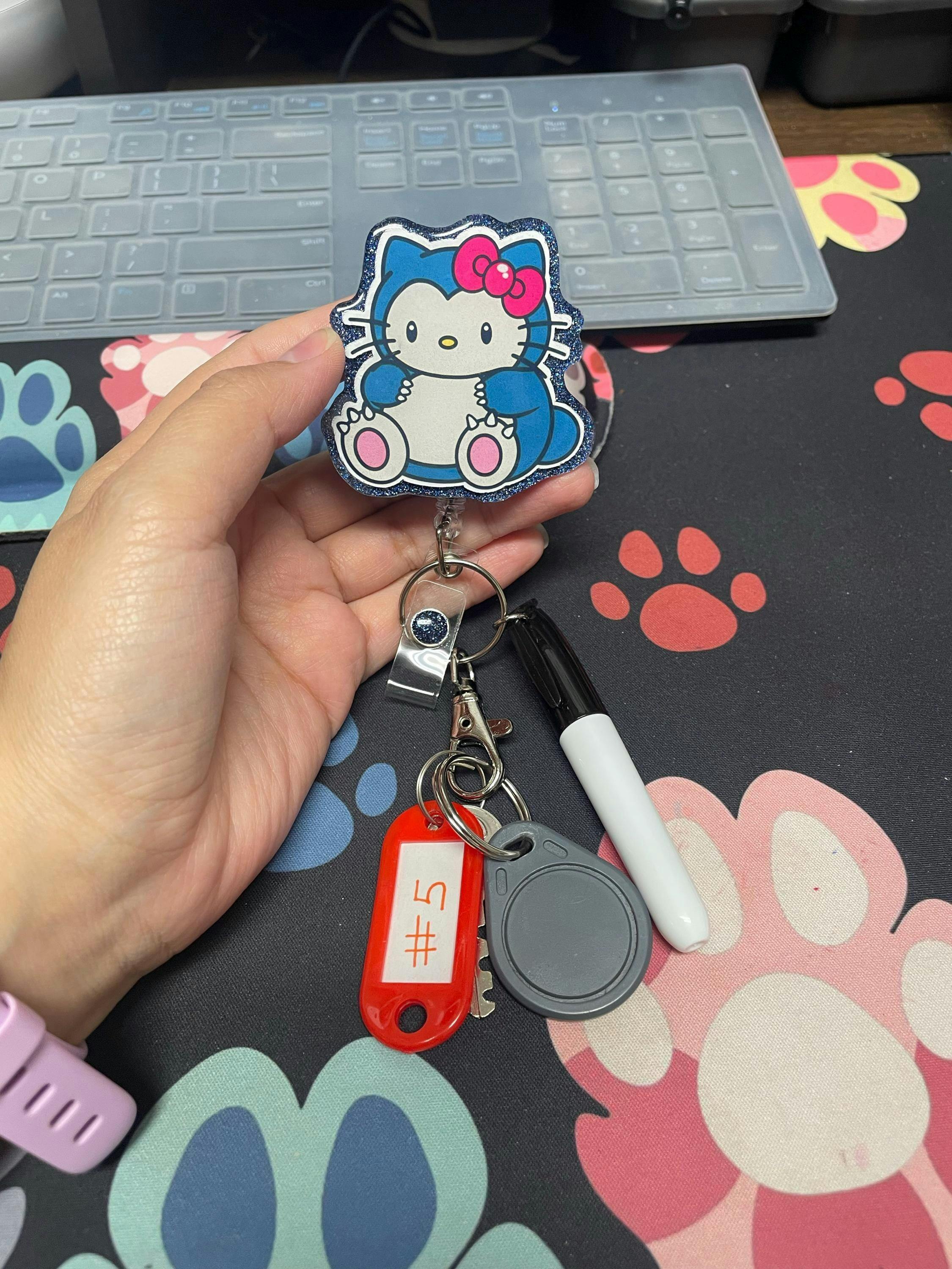 Cute Snorlax Inspired Kitty Badge Reel/ID Clip-Retractable Clips-(Alligator, Belt, MRI Safe, Carabiner) & Non-Retractable Clips